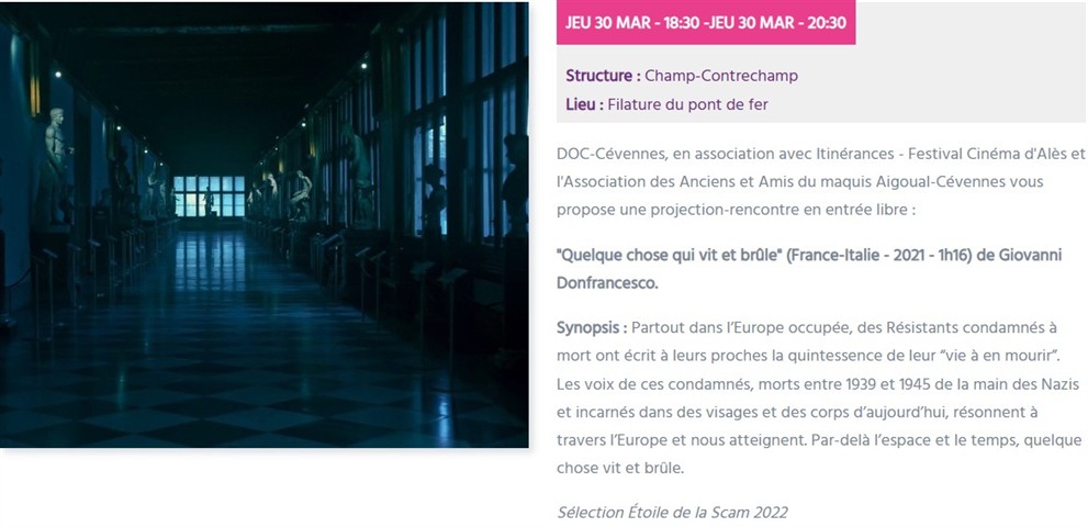 Projection le 30 mars à Lasalle, la filature et le 1er avril au temple d'Ardaillers