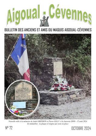 Le bulletin des anciens du maquis N° 72 d'octobre 2024 a été distribué. Pour vous le procurer, si vous n'êtes pas adhérent, vous pouvez nous contacter ou télécharger le formulaire d'adhésion. Voir la page "Les anciens du maquis"