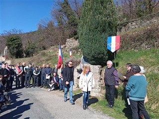Après un temps de recueillement sur la tombe d’Emile NADAL tué par les SS ce 29 février 1944, la cérémonie s’est poursuivie devant la stèle du Pourget comme initiée depuis 1997 par l’association "la Soureilhade".
